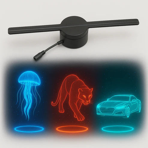 Evet! Mobil uygulamayı kullanarak kendi resimlerinizi, videolarınızı, logolarınızı veya animasyonlarınızı yükleyebilirsiniz. Desteklenen dosya formatları kullanım kılavuzunda yer almaktadır ve uygulama, içeriğinizi senkronize etmenizi kolaylaştırır.